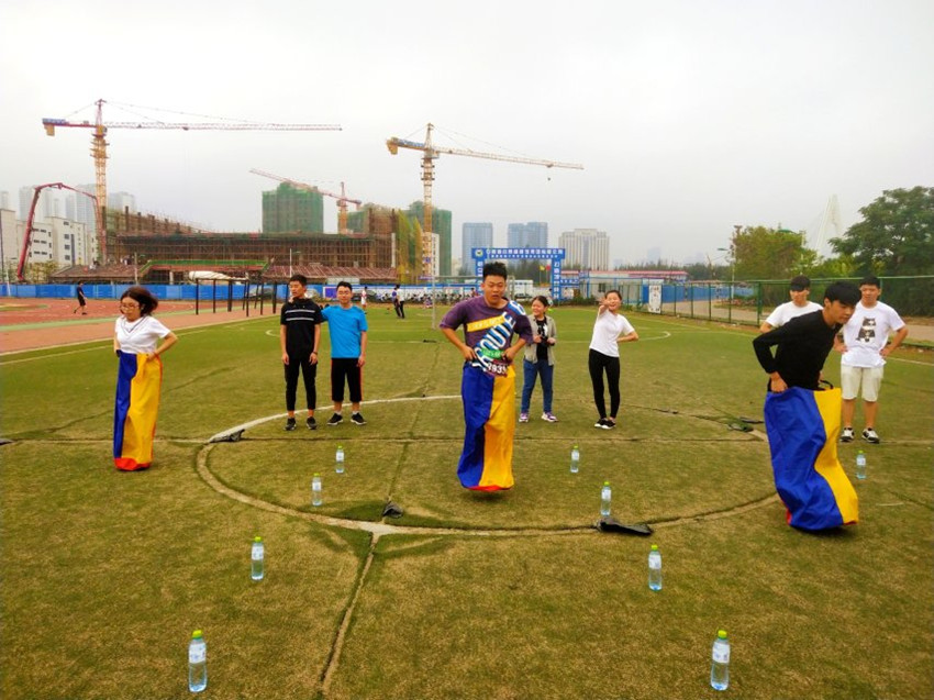 接着是第二项——“才艺大比拼”。“才艺大比拼”共有三个小游戏,分别是:袋鼠跳、摸石头过河和盲人之行。这个游戏既需要小组成员的分工合作,也需要成员之间的默契配合。在展示出个人风采的同时,也足以看出团队之间的斗志昂扬,奋力拼搏。