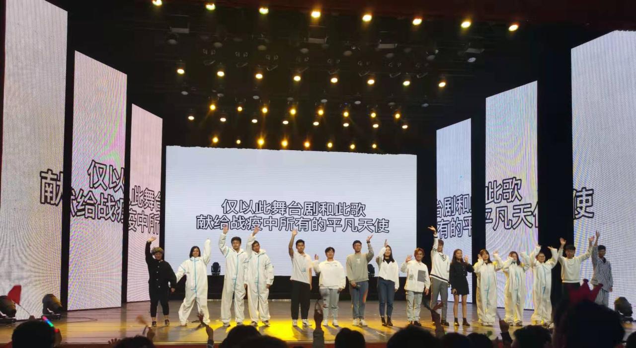 2020年是不平凡的一年,一场突如其来的新冠肺炎疫情席卷全球,给我们的生活带来了巨大的影响。这次疫情中,我们看到了党中央的坚强领导,看到了全国人民的勠力同心。晚会第三篇章:“建功海南,筑时代梦想”,将整场晚会氛围推向了最高潮。学院学生自编自演的抗疫舞台剧《不听劝的她》,展现了医护工作者的坚韧勇敢;2019年学院十大歌手代表廖辰东、黄婷、李懿昆、朱梦凡和唐瑭深情演绎了抗疫歌曲《平凡天使》,唱出了白衣天使逆行战“疫”的英勇;庞春窃、张恩波、贺子阳、尹西垚四位同学以饱满的情感朗诵《你的样子》,配合着抗疫英雄短片的播出,现场很多同学都默默感动落泪。这三个节目,是土建学子希望用我们自己的方式向疫情防控中所有默默付出的英雄致敬,向伟大的祖国致敬!