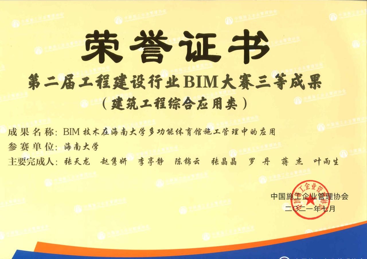 本届大赛组委会设在工业和信息化部人才交流中心,组委会秘书处设在石家庄铁道大学,大赛组委会组建专家委员会,中国工程院杜彦良院士担任专家委员会主任,石家庄铁道大学王明生教授担任秘书长。在赛制上,本届大赛坚持校企联合报名的参赛制度,由院校(高职、本科)和企业联合组成团队参赛。其中由张天龙老师指导、pg游戏电子模拟器BIM协会申报的“pg游戏电子模拟器多功能综合体育馆BIM技术综合应用”经过网上报名、作品提交、初评、答辩评审等环节,最终再次蝉联金奖!截止到目前,本项目已经荣获2021年全国高校BIM毕业设计大赛二等奖、2021年工程建设行业BIM大赛三等奖和2021年“龙图杯”全国BIM(建筑信息模型)大赛优秀奖。