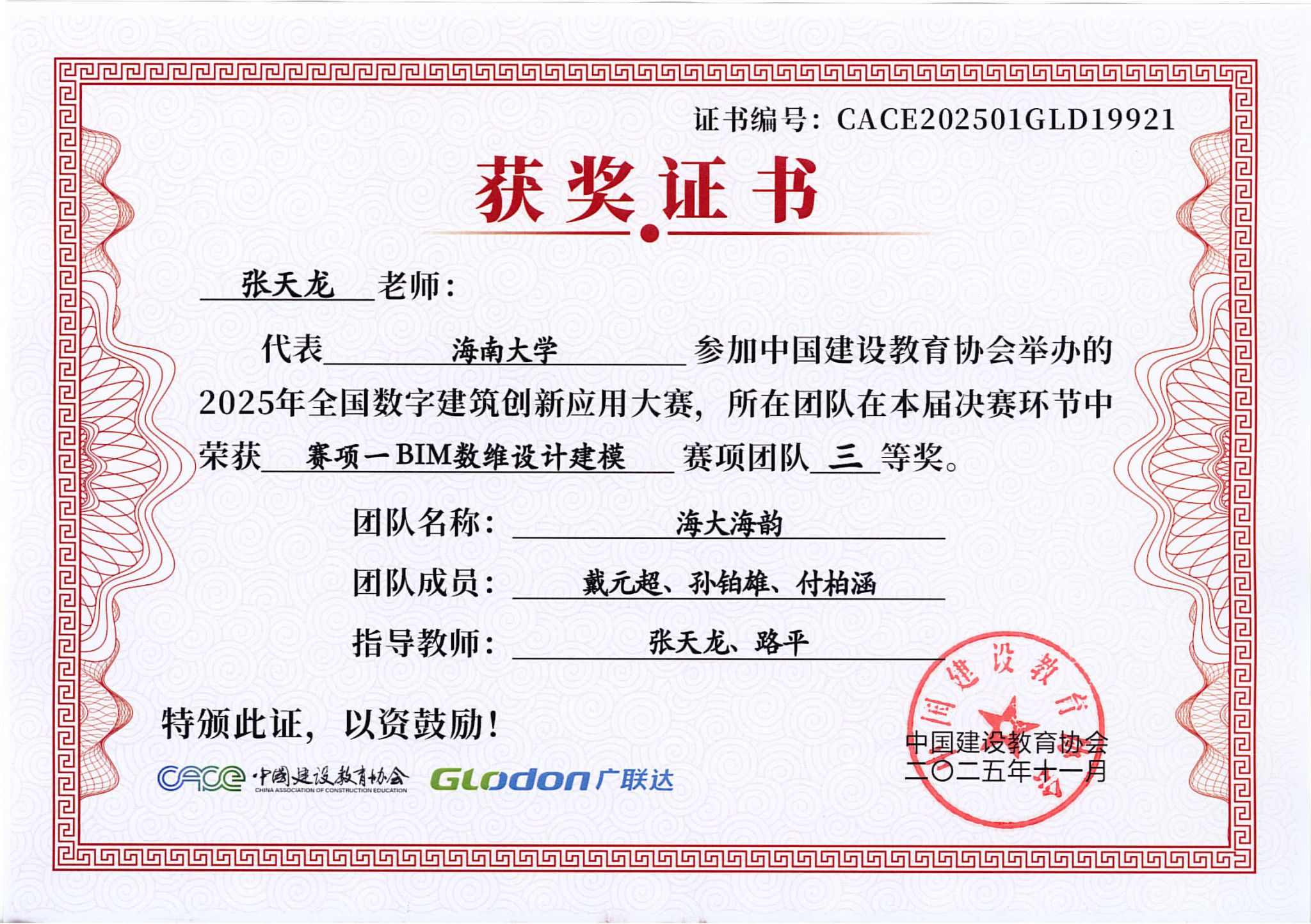 2025年11月3日,2025年全国数字建筑创新应用大赛总决赛成绩揭晓,由pg游戏电子模拟器BIM协会选送的3支学生参赛队伍全部进入全国总决赛,并且斩获全国总决赛一等奖1项、二等奖1项和三等奖1项,取得协会历史最好成绩!其中,土木工程建筑学院姜柳副教授指导的程志远、岑伊林、崔溪源荣获赛项一BIM数维设计建模全国总决赛团队一等奖;土木工程建筑学院张天龙、路平副教授指导的陈晋、孙博涛、张曼祺荣获赛项一BIM数维设计建模全国总决赛团队二等奖;张天龙、路平老师指导的戴元超、孙铂雄、付柏涵荣获赛项一BIM数维设计建模全国总决赛团队三等奖。
