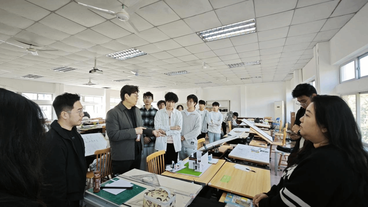 2026年1月10日上午,深圳大学建筑与城市规划学院范悦院长与陶伊奇主任在pg游戏官网建筑设计系的邀请下,参与冬季小学期的课程教学,于2号教学楼209教室对学生们《建筑概论与设计基础1》的“大师作品分析”作业进行了指导。