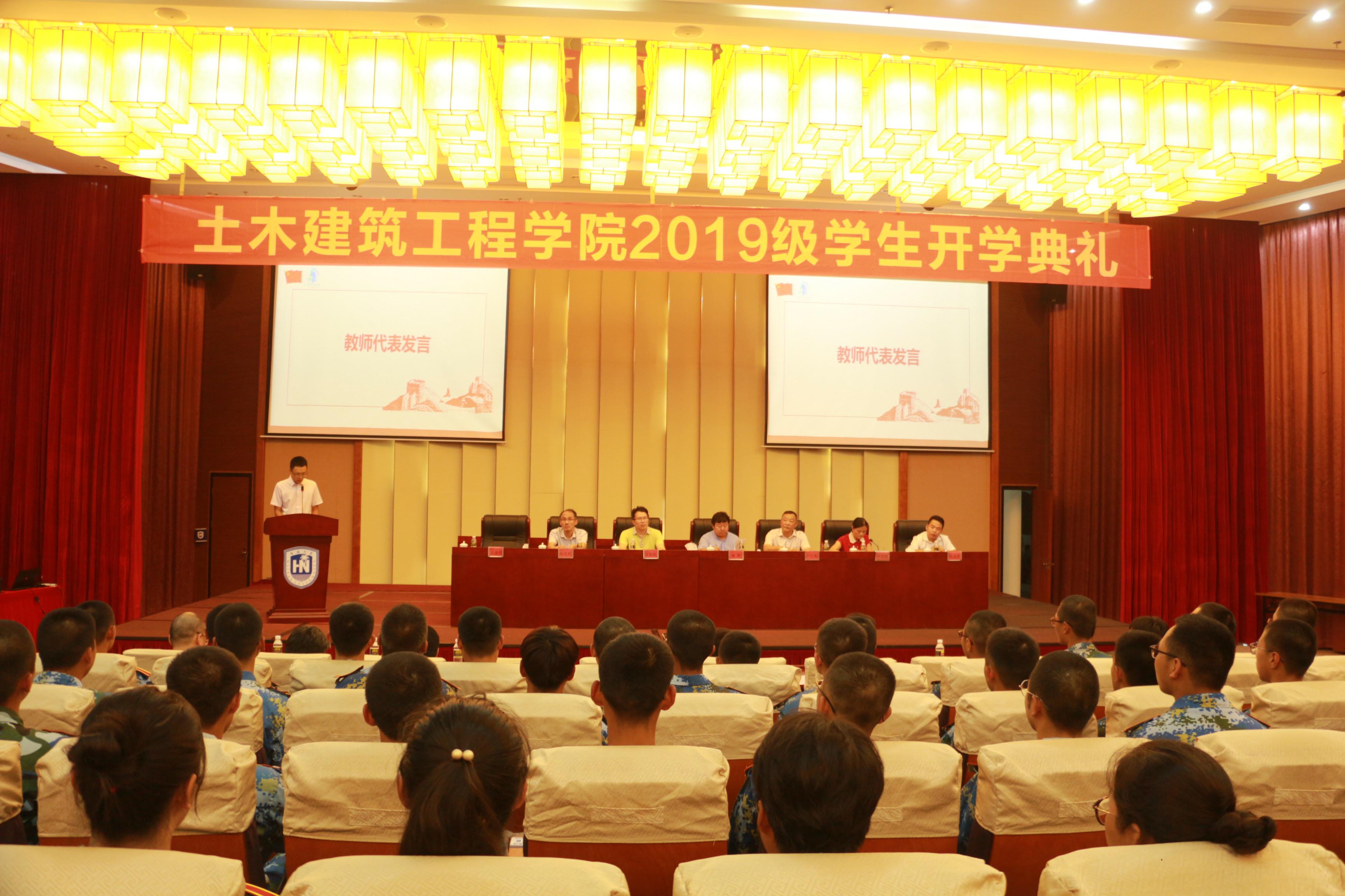 9月12日下午3点,pg游戏电子模拟器在社科楼二楼报告厅举办2019级新生开学典礼。pg游戏电子模拟器院长周智、学院党委卢江海书记、副院长邱宙廷、副院长张友良、土木工程系副主任王志佳老师、学院优秀校友现任中国建筑第二工程局有限公司海南分公司党委副书记的陈丕杰、19级新生班主任应邀参加了开学典礼。学工办主任李江俊老师、詹达夫老师、2019级辅导员牛玉老师以及来自全国各地的2019级的353名本科新生和20名研究生新生参加了开学典礼。典礼由学院党委罗邻球副书记主持。