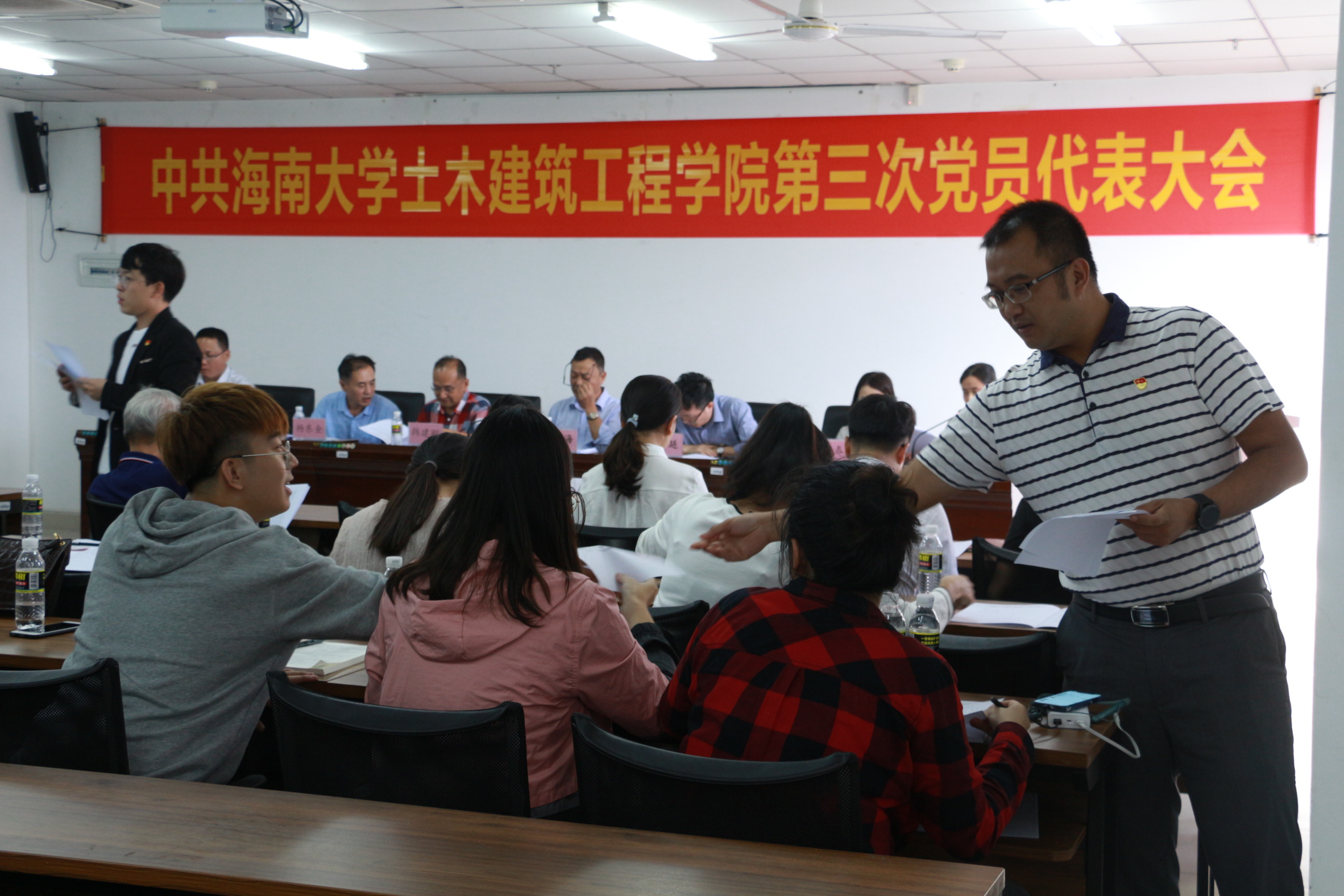 在悠扬的国歌声中,大会拉开帷幕。随后,学院党委书记以“以习近平新时代中国特色社会主义思想为指引立德树人,为创建一流土木学科而努力奋斗”为主题发表了会议报告。报告中,卢书记从办学规模和质量,办学基础条件、学科专业建设、科研创新、党建工作等多个方面详细综合地描述了pg游戏官网近四年来的发展与突破,并对全院师生员工表示衷心的感谢,并对学院工作中的不足提出改进要求及希望。随后,就当前学院面临的重大发展机遇和严峻挑战,卢书记提出“促进海南和南海经济社会发展为人才培养和学科建设的目标”,以传统土木工程相关学科为基础,向海洋土木工程领域发展,打造具有热带、岛屿和海洋特色鲜明的一流学科。在未来4-5年内实现将pg游戏电子模拟器建设成为以土木工程和海洋工程学科为主、建筑学和工程管理等多学科协调发展,具有“海洋”特色的,在国内具有一定影响的教学研究型学院的总体目标,并对学科建设和办学规模、师资队伍建设、人才培养、教学科研成果、教学科研基础条件五大方面提出了具体要求。