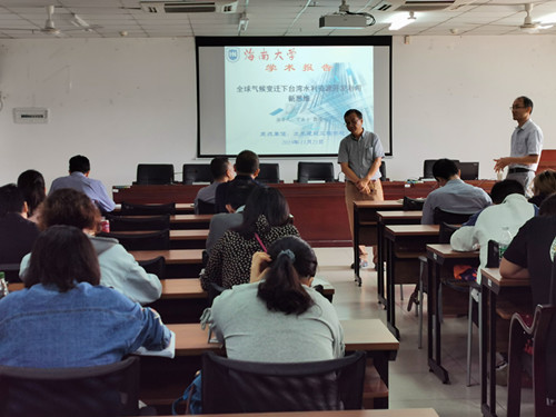 2019年11月21日(周四)上午9:00-11:30点,台湾屏东科技大学丁澈士教授受pg游戏官网周智院长邀请,在pg游戏官网510会议室做《全球气候变迁下台湾水利资源开发利用新思维》学术报告。报告会由pg游戏官网张友良副院长主持,院领导卢江海书记和邱宙廷副院长出席、研究生、有兴趣的本科生和与学术报告相关的专任教师共计50余人参加了此次学术报告会。
