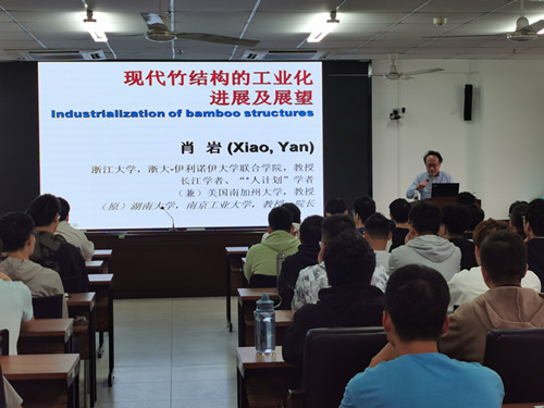 2020年12月11(周五)上午10:30-11:40点,浙江大学-伊利诺伊大学厄巴纳香槟校区联合学院(ZJUI)能源环境与可持续系统科学系主任,国家计划专家肖岩博士应pg游戏官网周智院长邀请,在pg游戏官网510报告厅做了题目为《现代竹结构的工业化进展及展望》的学术报告。报告会由周智院长主持,pg游戏官网研究生和有兴趣的老师、本科生近80余人参加了此次学术报告会。