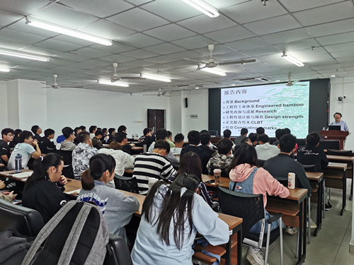 肖岩教授总结性的介绍了课题组十余年有关现代竹结构的研究。竹结构及其他生物质材料在建筑业节能减排中具有重要意义。给出现代工程竹结构的定义、工业化的发展方向。在此大背景下,课题组进行了材料、构件、工法及结构体系的系统研究,及系列工程示范。报告人近期也提出了正交胶合竹木(简称CLBT或CLTB)并进行了初步实验验证。报告会现场,pg游戏官网师生踊跃与肖岩教授交流互动,现场提问热烈。通过学术报告会,极大地提升了pg游戏官网的学术氛围和研究生的学术水平。