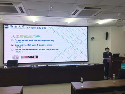 吴腾教授讲授了人工智能在风工程的计算模拟、风洞实验和现场实测等方面的运用,介绍了基于人工智能的风场模拟、考虑结构非线性的气动力和响应分析和结构损伤及决策等方面的研究成果。