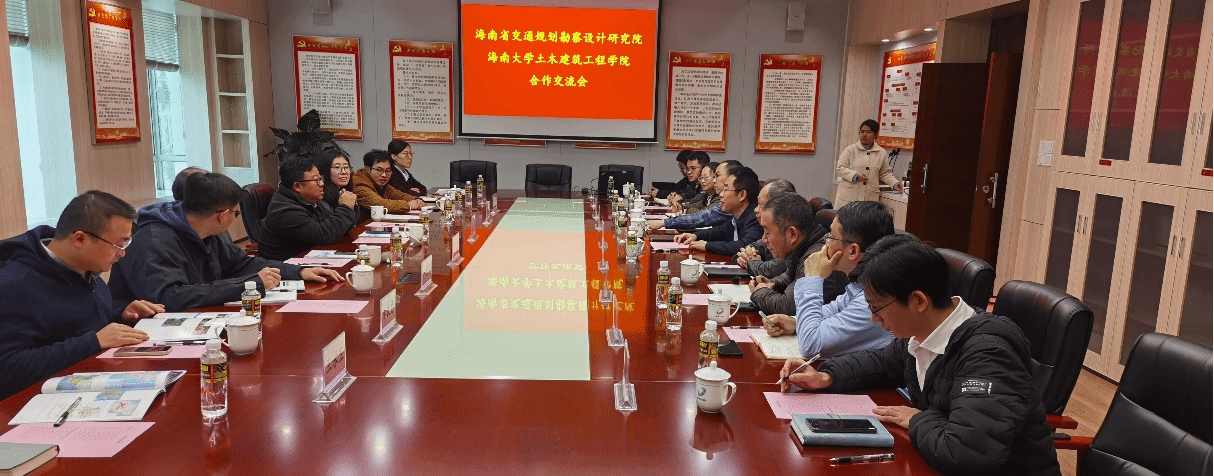 首先周智院长介绍了学院发展历程、一流本科、学科建设和科研特色等情况。王泽仁院长介绍了海南交规院基本情况。双方在道路生态防护、桥梁智能建造和装配式建造、基于BIM的道路数字化方面展开了深入交流。会谈气氛热烈融洽,双方在人才培养、产学研合作等方面进行了探讨,表示后续加强交流沟通,推进合作。