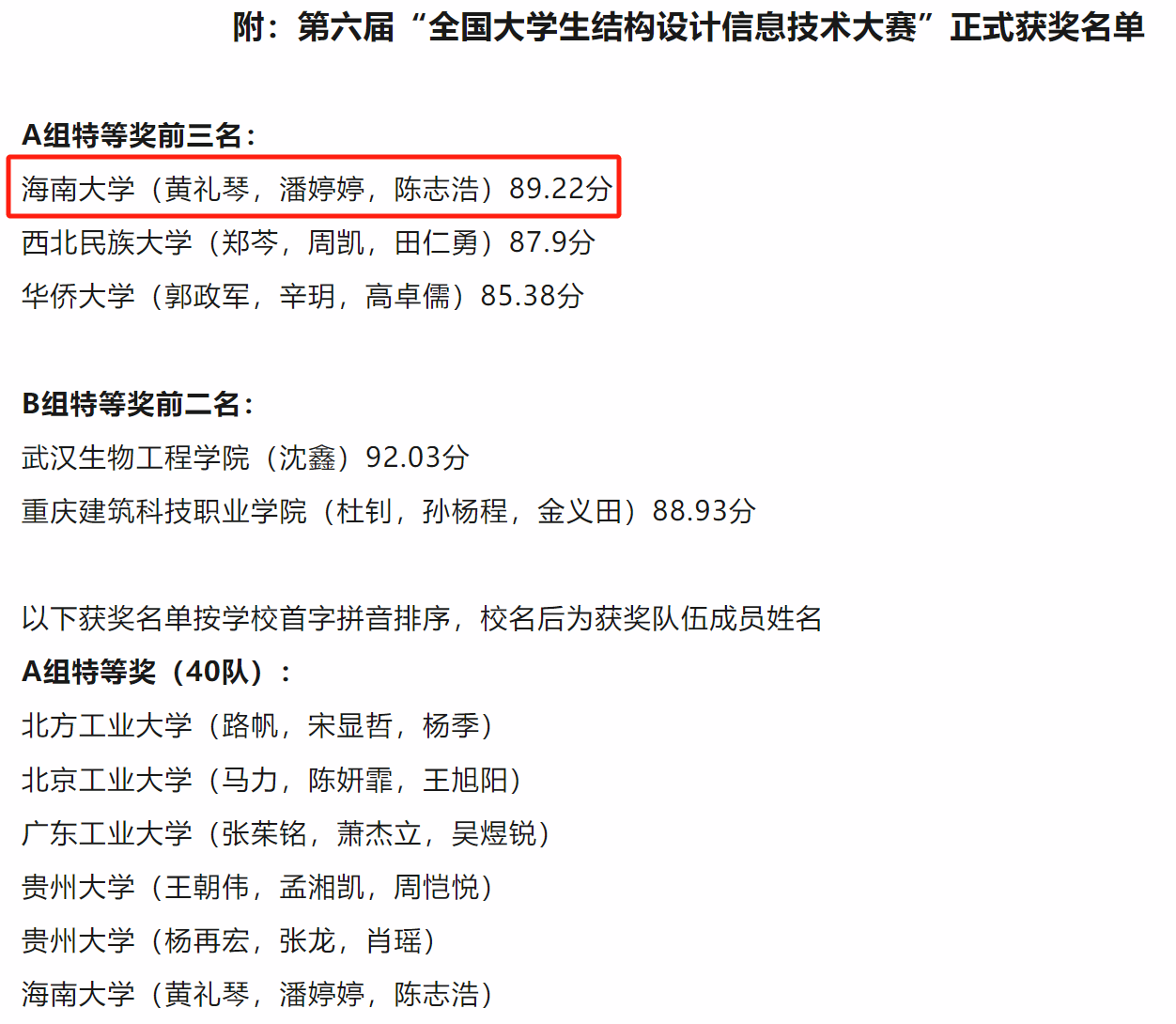 2024年5月20日,经过大赛首次特等奖答辩,第六届“全国大学生结构设计信息技术大赛”正式获奖名单公布,pg游戏官网学生团队在本次大赛中再创佳绩。荣获特等奖1支队伍,一等奖4支队伍,二等奖1支队伍。值得庆贺的是,由赵菲老师指导的“pg游戏电子模拟器(黄礼琴,潘婷婷,陈志浩)”团队以89.22的高分荣获全国特等奖第一名!除此之外,赵菲老师还获得了优秀指导老师奖。他们的出色表现不仅为学院赢得了荣誉,更是生动诠释了pg游戏官网学子追求卓越、不断超越自我的精神面貌,激励着更多学子在未来的征程中不断砥砺前行,创造更加辉煌的成绩。