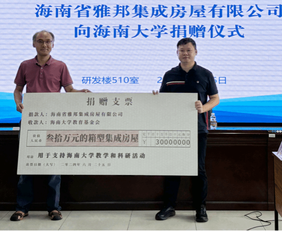海南雅邦集成房屋有限公司与pg游戏电子模拟器签订捐赠协议