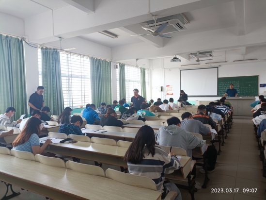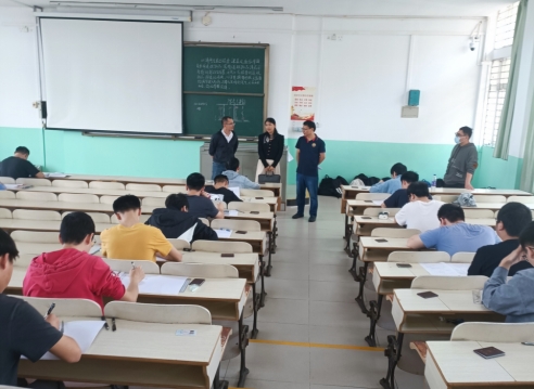 两位领导认真查看了考场秩序、监考人员履职、考生出勤、考试纪律、考生答卷等情况,并指定监考教师按阶梯教室“隔行隔位”要求安排学生的座位。从巡查现场看,考试组织规范有序,监考人员认真履行监考职责,学生遵守考试纪律,各考场秩序井然。