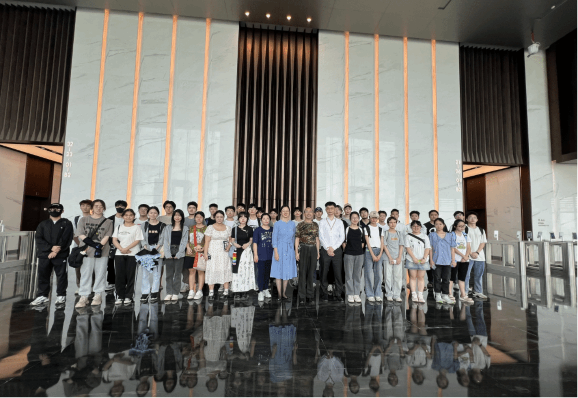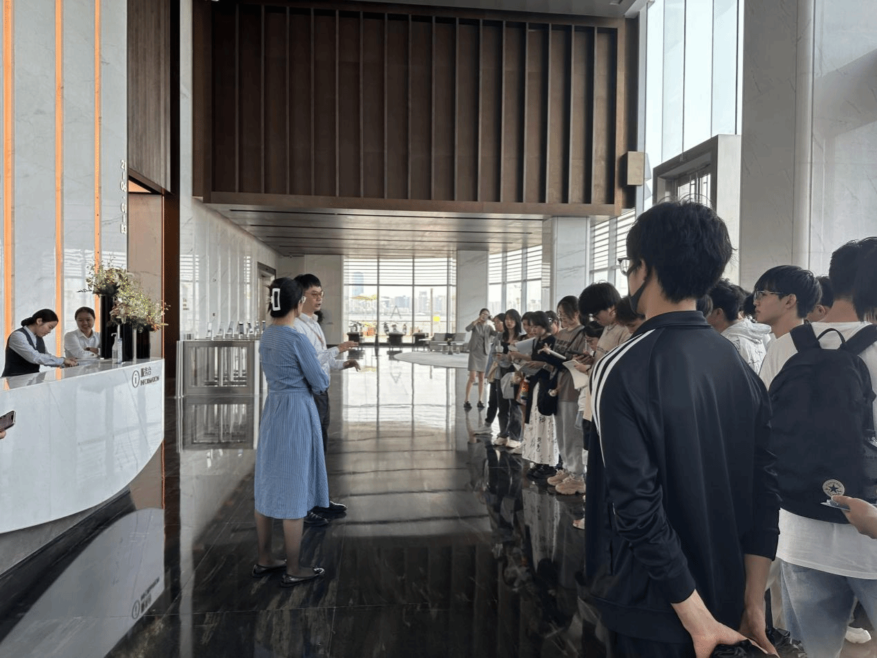 最后,全体师生在郑顾问的带领下分批次有序地参观了17层精装办公层,以及33层顶层办公空间为大家讲解了项目运用的呼吸幕墙系统、架空布线、分区电梯、钢结构防火等技术要点。针对同学们的疑问,从建筑优势、功能分布、业态布局、结构特点、绿建材料等诸多方面进行了专业解答。