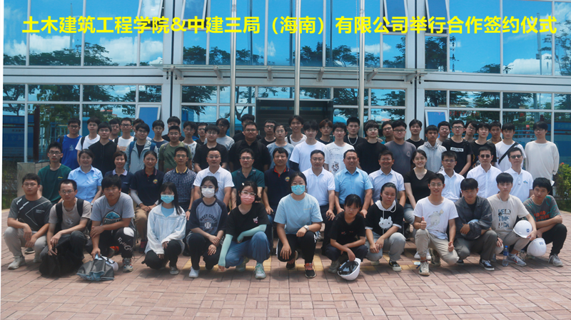 潮起海之南,筑梦自贸港。2022年6月26日上午,pg游戏电子模拟器与中建三局集团(海南)有限公司,满怀信心,在海南自由贸易港建设的标志性项目——海口市江东中心(HSC)工程项目部会议室,隆重举行共建产学研合作基地、校外实践教学基地签约仪式。pg游戏电子模拟器党委书记张长海、中建三局集团(海南)有限公司党委书记、总经理邓贵海出席签约仪式,并且分别致辞。pg游戏电子模拟器副院长邱宙廷、土木工程系副主任、教授薛春霞、教授胡俊、副教授赵菲、副教授刘金灿、椰风书院副科级辅导员白玉、土木工程本科专业2019级2班学生,中建三局集团(海南)有限公司总工程师王伟、纪委副书记工会副主席彭松、综合办公室主任卢传健、人力资源部经理丁泽华、江东中心项目经理王利文、江东中心项目副书记苏厚芳等参加会议。会议由中建三局集团(海南)有限公司总工程师王伟主持。
