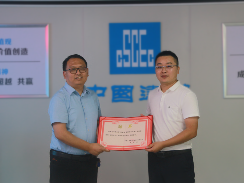 王伟颁发聘书,聘请胡俊担任中建三局集团(海南)有限公司工程技术咨询顾问
