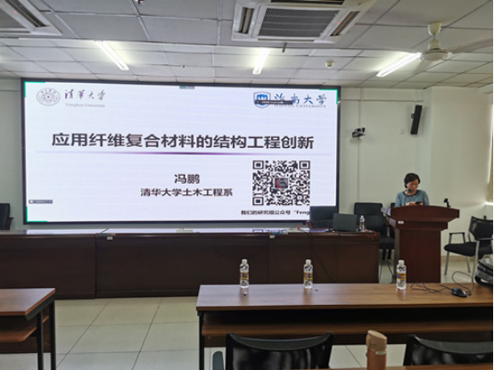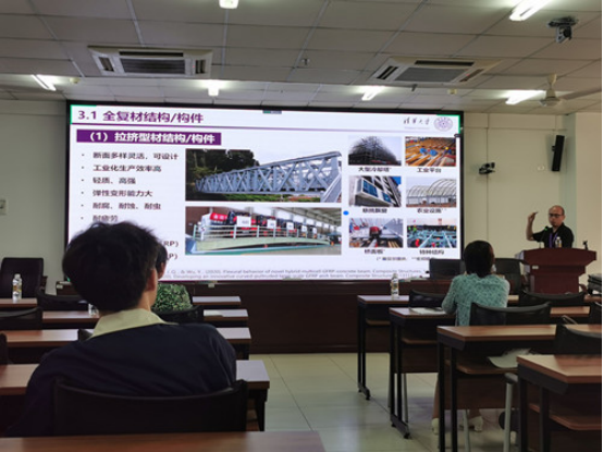 冯鹏教授首先介绍了纤维复合材料在结构工程领域的创新性应用,包括产品性能、应用形式、设计方法、标准规范及应用进展等;接着对如何培养面向未来的土木工程学科人才提出了自己的思考;最后分享了Engineering Structures国际期刊的论文发表要求。报告结束后,冯鹏教授与师生展开了热烈的讨论,对师生感兴趣的问题进行了耐心细致的解答。