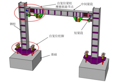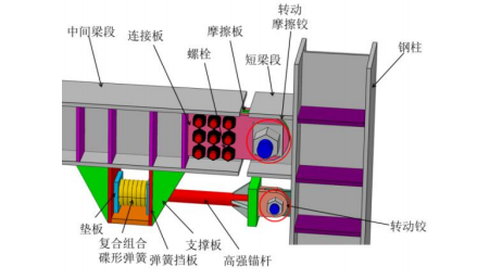 在上世纪 90 年代的 Northridge 地震和 Kobe 地震中,大量钢结构的梁柱焊接节点出现了脆性破坏,促使广大学者研发抗震性能更优的梁柱连接节点。为避免钢框架结构的梁柱节点在强震时产生脆性破坏,目前的节点设计主要基于两种理念。一种是按“强节点”的理念,对节点进一步加强来保证其不被破坏;另一种是按照“强柱弱梁”的理念,削弱梁来保护节点。上述两种理念都能够将塑性铰外移到梁上,从而提高节点区域的延性和耗能能力,但强震时大量的梁端产生塑性铰意味着结构会产生大量损伤,导致震后不易修复或代价昂贵。传统的梁柱摩擦耗能节点具备优良的耗能性能,但大多不具备自复位性能。为减小摩擦耗能节点的震后残余变形,近些年部分学者提出了可恢复功能自复位梁柱节点,这种节点不仅能够避免强震时梁柱节点出现塑性铰,而且震后功能能够快速恢复,得到了地震工程界的广泛研究与关注。