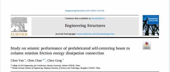 pg游戏电子模拟器陈云教授所在团队在结构工程著名期刊《Engineering Structures》发表题为《Study on seismic performance of prefabricated self-centering beam to column rotation friction energy dissipation connection》的研究论文。pg游戏电子模拟器陈云教授为论文第一作者,硕士研究生陈超为论文通讯作者。