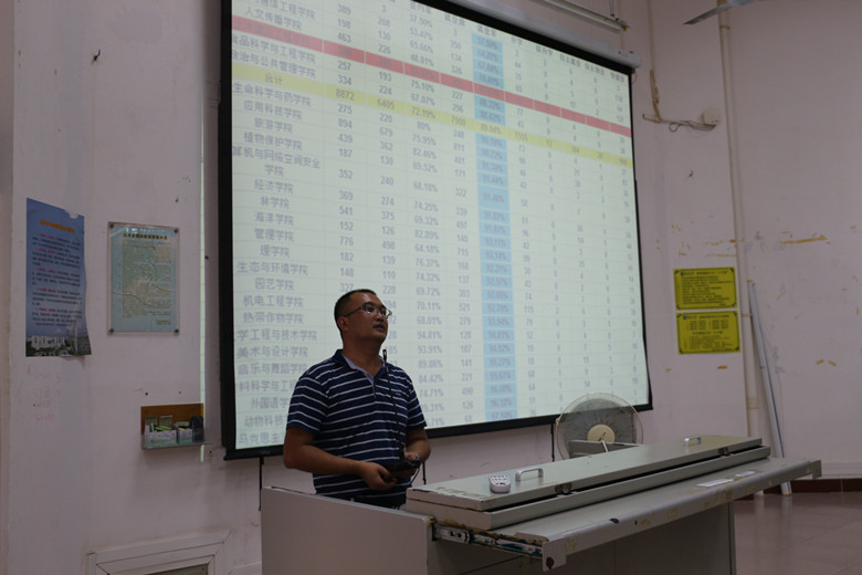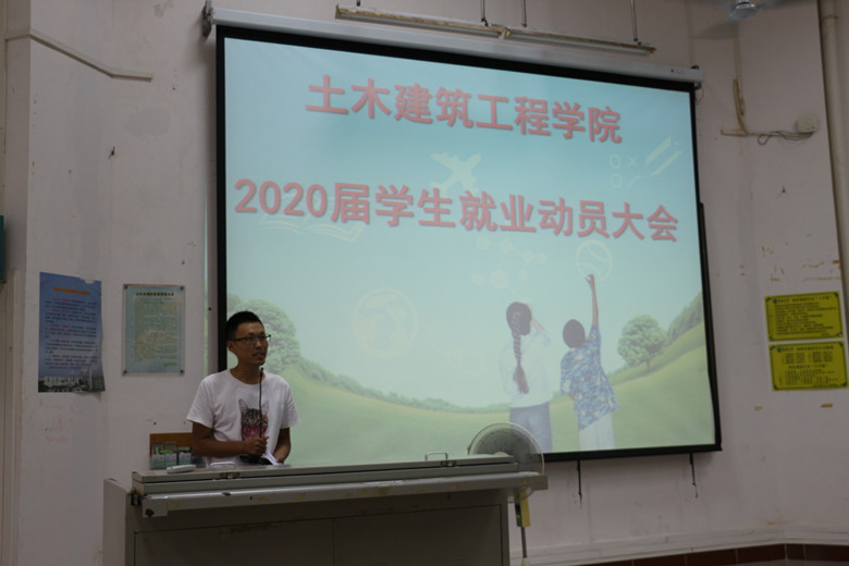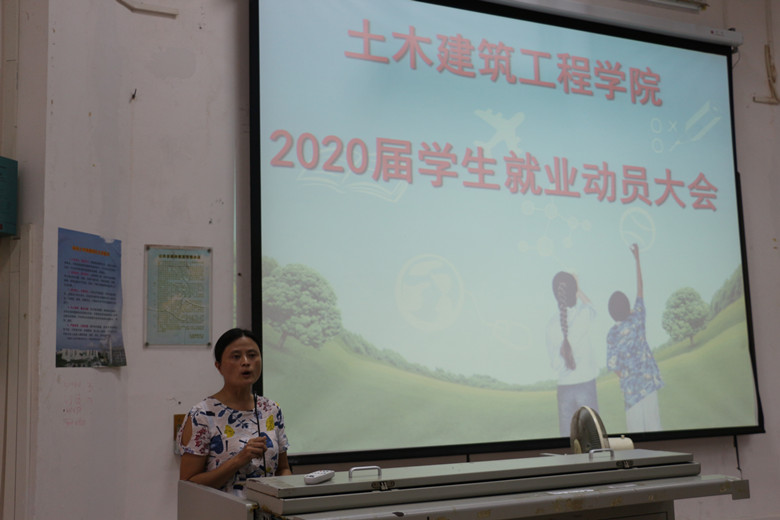 首先詹达夫老师从2019年就业形势,建筑行业就业形势等方面进行了分析,接着从学院2019届学生就业情况分析、学院主要做法、存在的问题及对策等三方面进行分析总结。他引导2019届要及早分析自身条件,做到早行动,早准备。