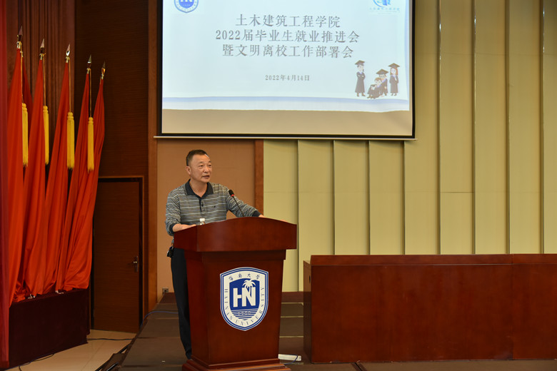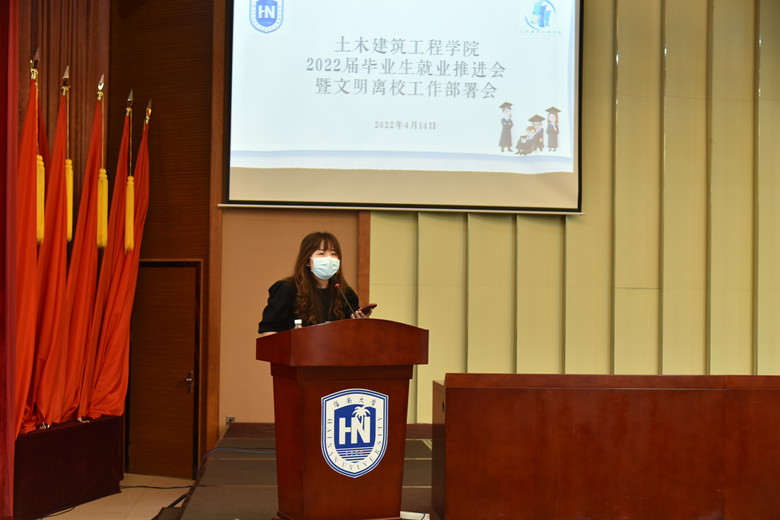 2022年4月14日下午3时,pg游戏电子模拟器2022届毕业生就业推进会暨文明离校工作部署会在社科楼二楼报告厅顺利举行,出席本次会议的领导有,学院党委书记卢江海、副书记孙晓媛、学工办副主任詹达夫、团委负责人孙成潇及2022届全体毕业生参加会议,会议共有三项议程,学工办副主任詹达夫主持本次会议。