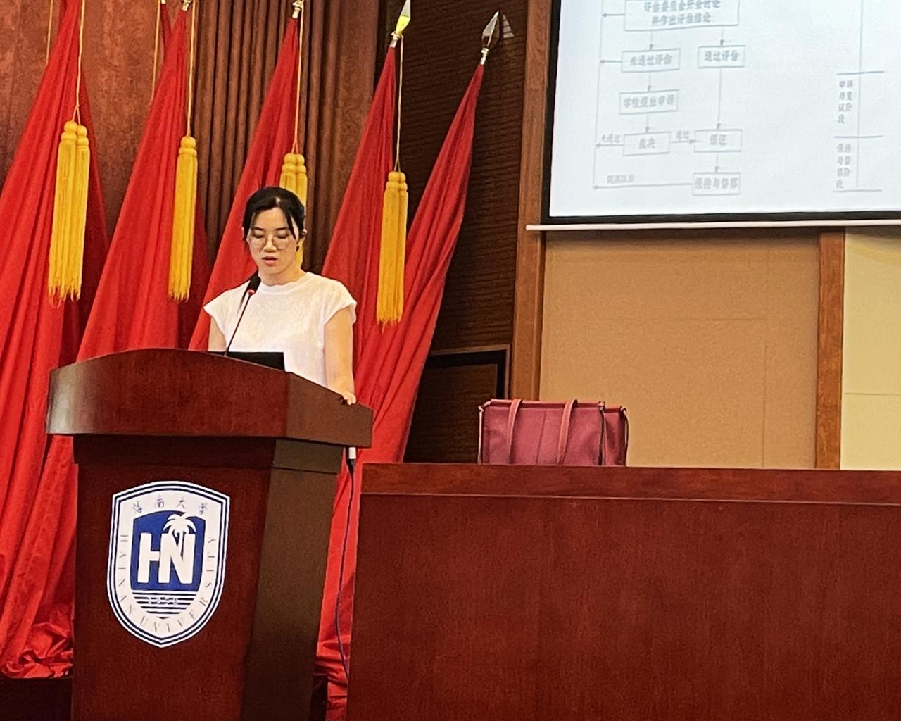 随后,建筑系教师朱丽玮针对建筑系近期制定的一系列规章制度、教学标准向全体师生进行了介绍,包括建筑设计课程评分标准、建筑设计课程联评制度暂行办法、建筑设计作业出图要求等,并对高年级建筑师业务实习的实习单位资质与指导建筑师资格进行了说明。