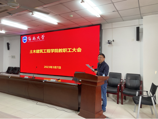 2023年3月7日下午,pg游戏电子模拟器新学期教职工会议在研发楼510报告厅召开。学院全体党政领导班子成员张长海书记、周智院长、邱宙廷副院长、张友良副院长、田元福副院长、薛春霞副院长、辛大波副院长、系主任、实验教学中心负责人、科室管理职员和全体教师等参加会议。会议由学院院长周智主持。