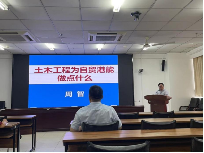 周智院长围绕学院的中心工作,做了题为《土木工程为自贸港能做点什么》的报告。报告从土木工程概念与内涵、土木工程专业特征、土木工程发展趋势、热带海洋土木工程、中国建造与探索五个方面展开。周智院长指出土木工程作为镶嵌在地球上的人造工程,它的内涵既包括大陆,也包括海洋。只要有人类就有土木工程,永无止境,未来在役建筑的维护加固改造,以及城市更新,有许多防灾减灾、结构安全鉴定、材料耐久性方面的问题需要解决和研究,并进一步指出土木工程专业的发展模式应为国家战略+地域工程科学问题。随着自贸港建设的不断深入推进,仍有很多重大工程需求,基于海南本土自然环境及重大土木科学问题,如建筑防水、抗台风、耐久等区域特征问题都尚未得到有效解决,热带海洋土木工程未来大有可为。